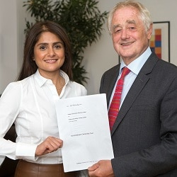 Vidisha Joshi and Patrick Allen with the trust document