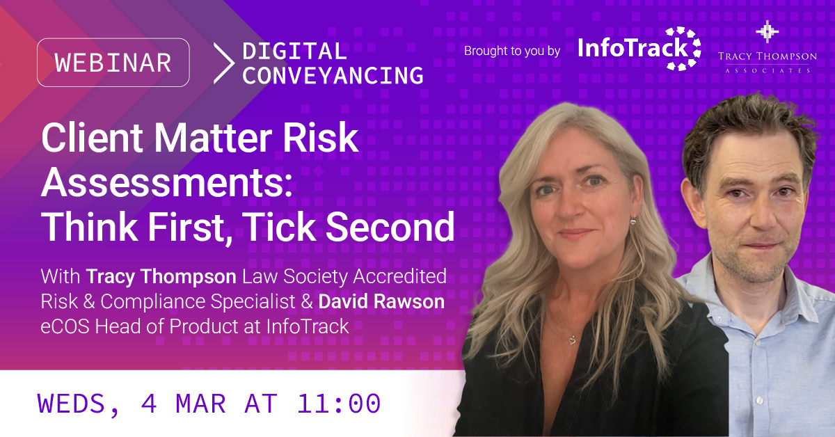 InfoTrack’s Head of Product for eCOS shows you how to get this right. See compliant, intuitive risk assessments in action that satisfy regulators without sidelining your expertise.