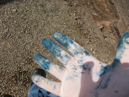 Blue Billy staining a person’s hand. Picture from gardenbeet.com