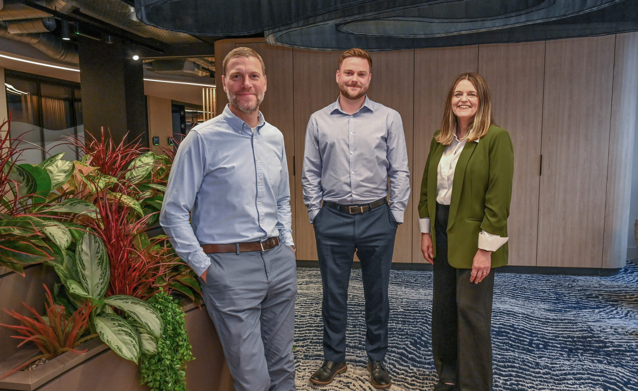 Nik White, Managing Partner at Brabners with Rachel James, Partner at Brabners and Richard Rigg, Partner at Brabners, at Brabners Liverpool.