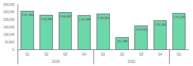 - Q1 2021 transactions were up 193% on Q2 2020 after the shutting down of the property market caused transactions to slide to 82,385
