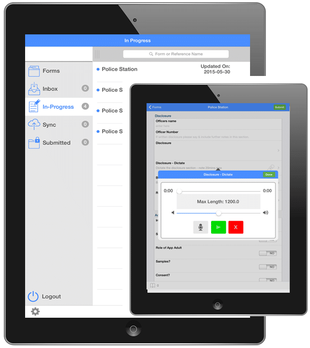 iAttend provides the relevant forms required by criminal defence lawyers namely Police Station, Crown Court, Magistrates Court and Telephone Attendance that once submitted, can be incorporated within the Outlook Office case management software. The app synchronises whenever there is an Internet connection available and sends all the recorded forms to the office-based DPS system.