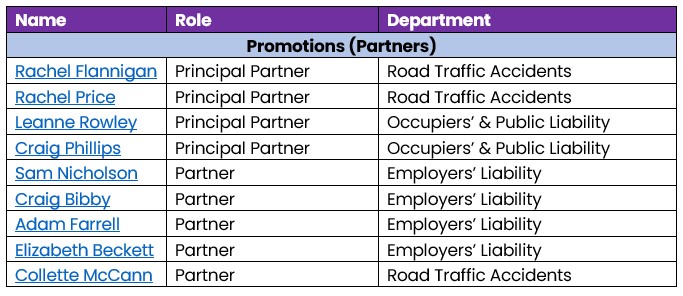 Various other promotions were confirmed within the HR team, New Claims Team and other departments both legal and non-legal.