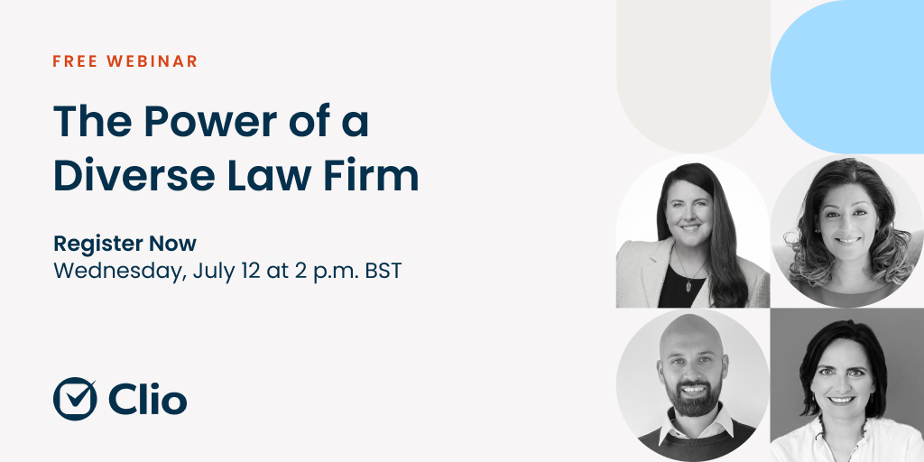 By joining Clio for a 60-minute panel webinar, “The Power of a Diverse Law Firm”, on Wednesday, 12 July.