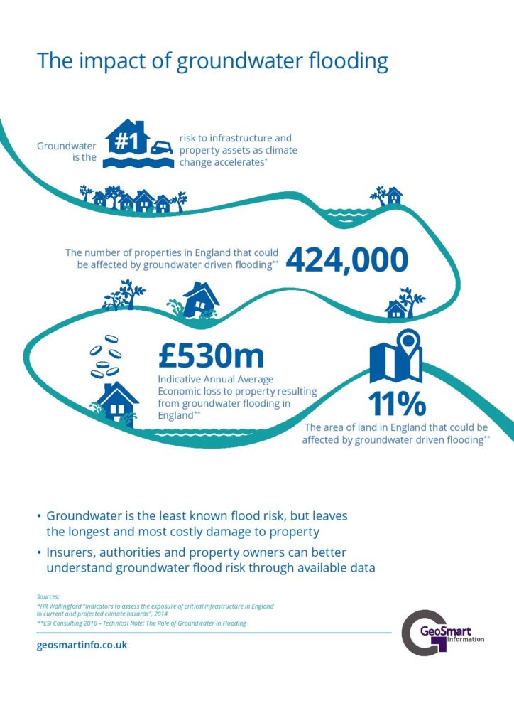 GeoSmart provides a range of groundwater flood risk assessments through its FloodSmart report range, while the 5m National Groundwater Flood Risk Map is also available under licence.