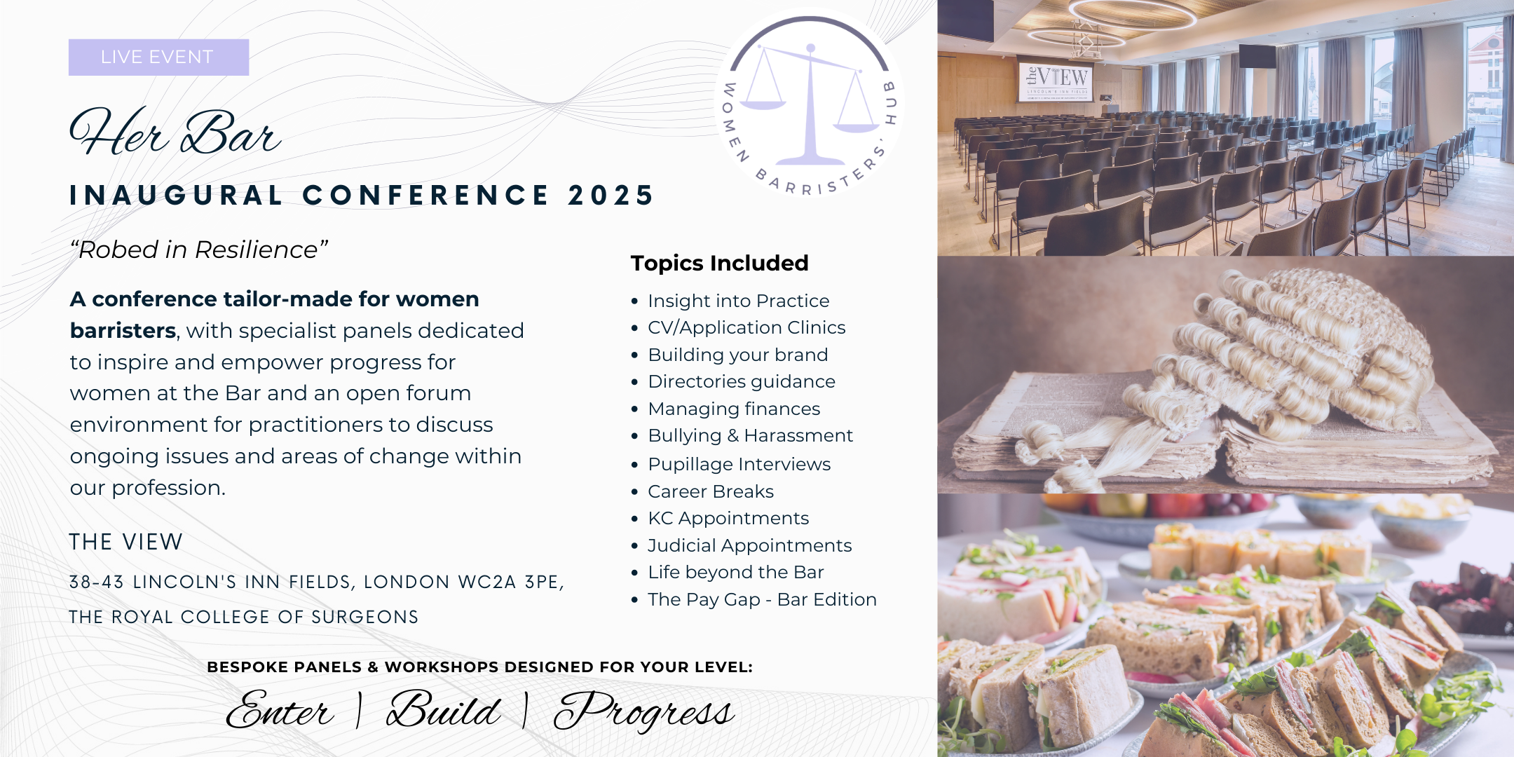 The first step in addressing system issues is identifying them and their impact. The Her Bar Inaugural Conference 2025, scheduled for Saturday, 17 May 2025, at The View in The Royal College of Surgeons of England in London, presents a unique opportunity to address these issues head-on. This full-day event is tailored specifically for women in law, offering a platform for empowerment, professional development, and meaningful connections.