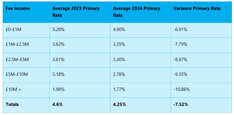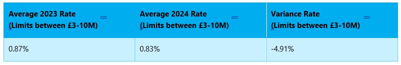 There are factors that will contribute to rate, and one would anticipate those firms with more exposure to higher risks areas of work and/or significant claims payments would be experiencing higher rates than the average, and those with lower risk areas of work, and/or no claims would be experiencing lower than average rates. What the analysis clearly demonstrates is the dilution of rate as a firms revenue increase, it also highlights that the rate dilution experienced in 2024 was more notable the larger a firms revenue.