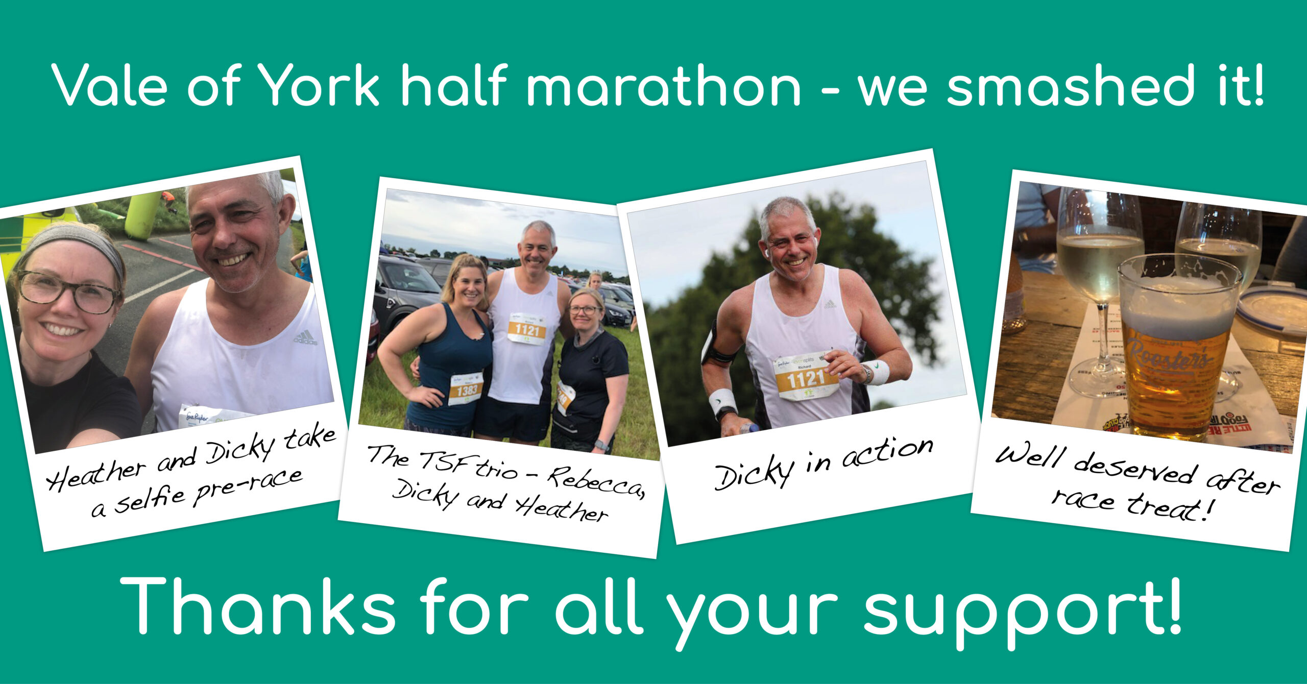 One of the key highlights in the fundraising calendar was when Dicky Davies, Heather Pollard and Rebecca Scherman completed the Vale of York half marathon in September.
