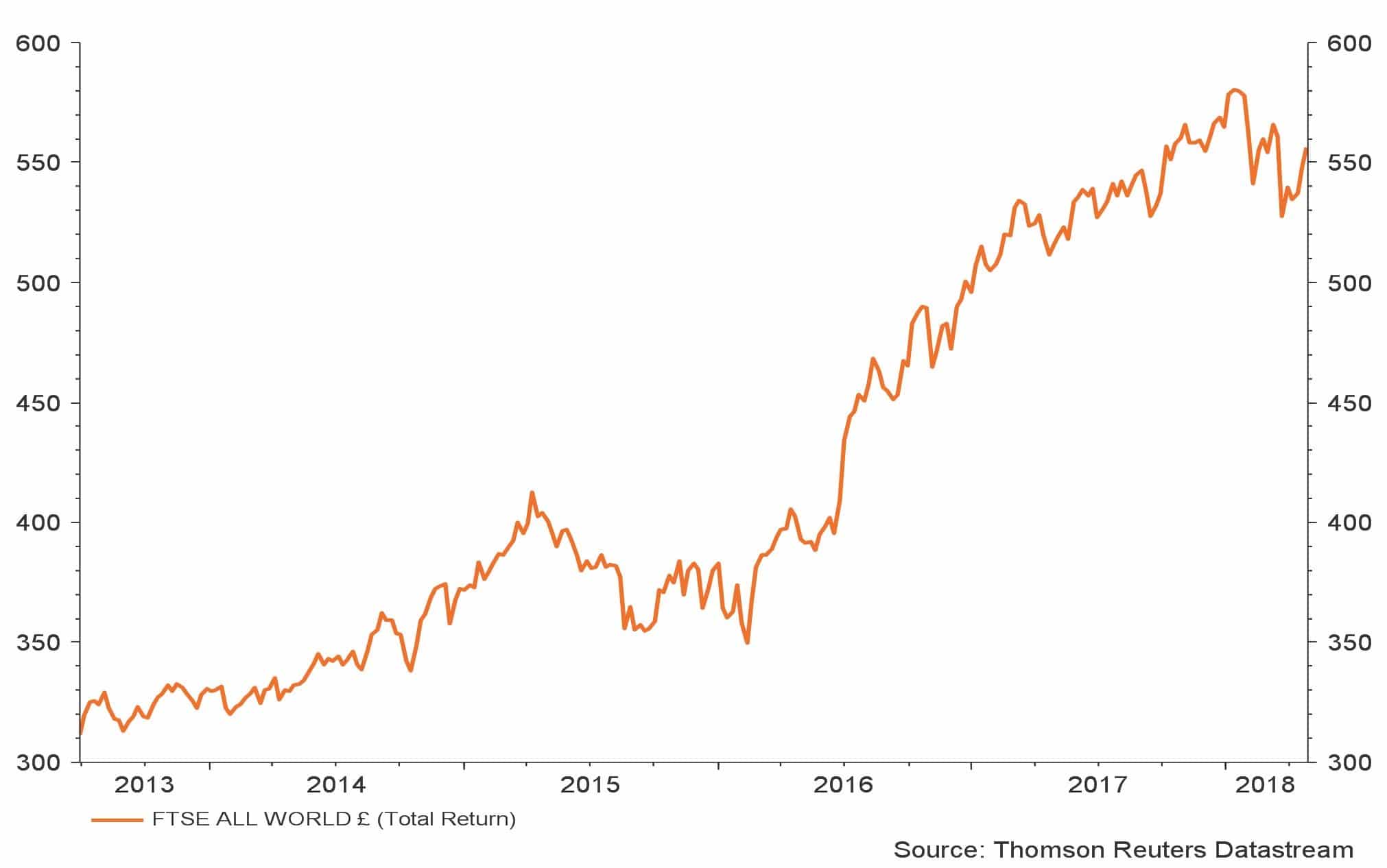 Figure 1: On the up – FTSE All World Equity Index (sterling) over five years
