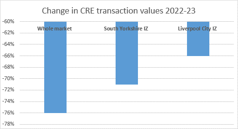 The statistics are within the context of a subdued market where total transaction value declined by 76% across the whole market (England and Wales) year on year. The total value of commercial transactions within the South Yorkshire Zone declined by -71% year on year, while the Liverpool City Region Zone declined by -66%.