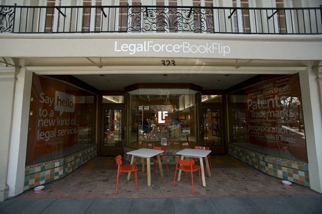 The US store in Palo Alto, the heart of Silicon Valley, launched last night with a novel bookstore/coffee shop feel (see more photos below), which will be replicated in the London store. 'LegalForce BookFlip' provides online do-it-yourself, lawyer 'assisted', and lawyer 'guided' services. Customers can walk in and meet with a lawyer on weekends and nights, and the store offers a range of community events as well.