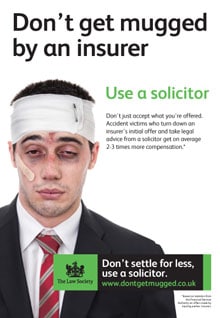 The Law Society yesterday unveiled its “bold” new advertising campaign to promote personal injury solicitors, with the strap-line ‘Don’t get mugged by an insurer – use a solicitor’.