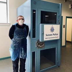 Sussex police have also installed ‘safe consultation video booths’, which defendants can use for the video hearings and also remote consultations with their lawyers.