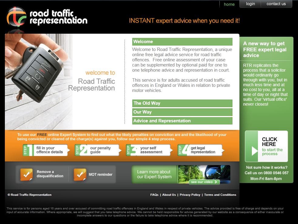 The aim of RoadTrafficRepresentation.com (RTR) is to replicate the process a solicitor would go through when considering a motoring offence, and does it much quicker and at no cost by automating this and getting the user to enter all their details into the system.